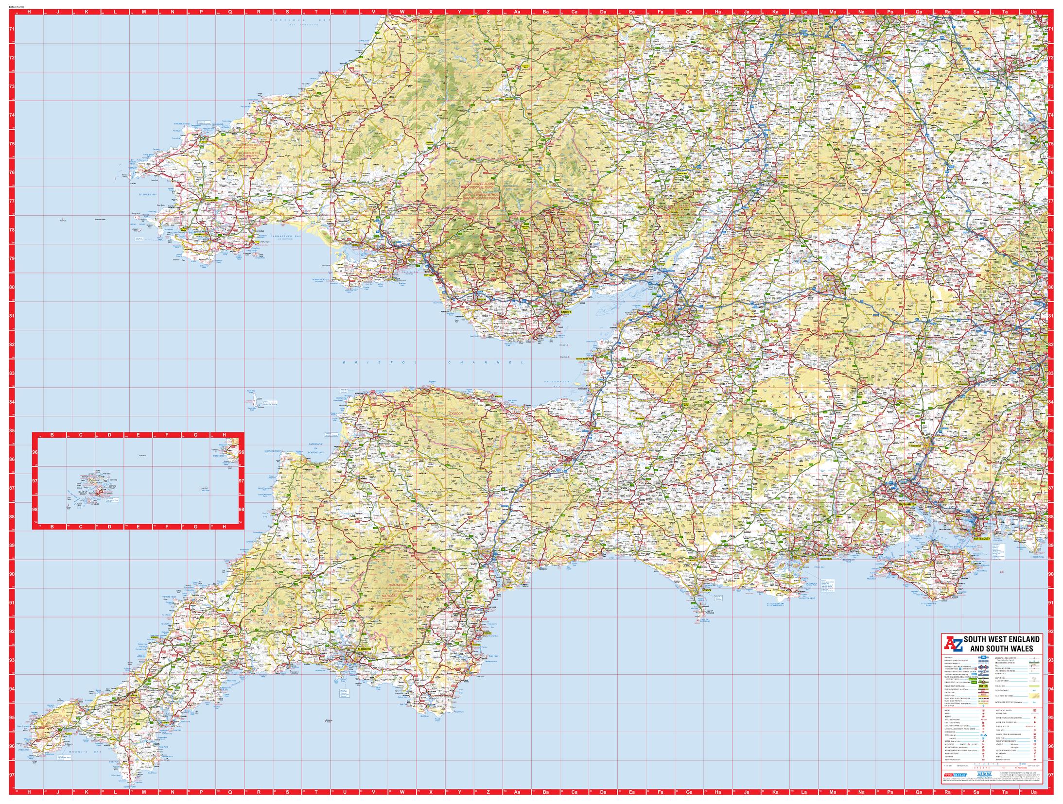 This A-Z sheet map of South West England and South Wales is a road map extending from Land's End and St. David's Head in the west to Aberystwyth in the north and Chichester in the south east.