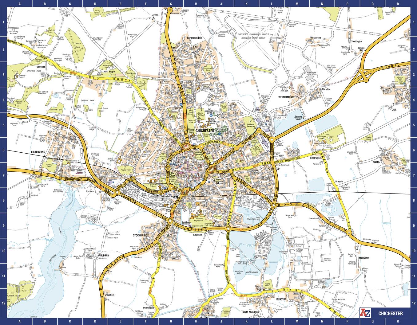 The perfect reference map for finding your way around Chichester. This up-to-date detailed A-Z town plan indexes 780 streets in and around Chichester. As well as the harbour, the other areas covered are Fishbourne, Stockbridge, Whyke and Portfield. The highly detailed 1 mile to 5.5 inch street map includes places of interest, among other features.
