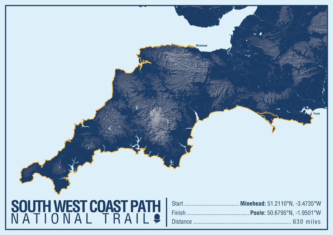 South West Coast Path National Trail Map Print
