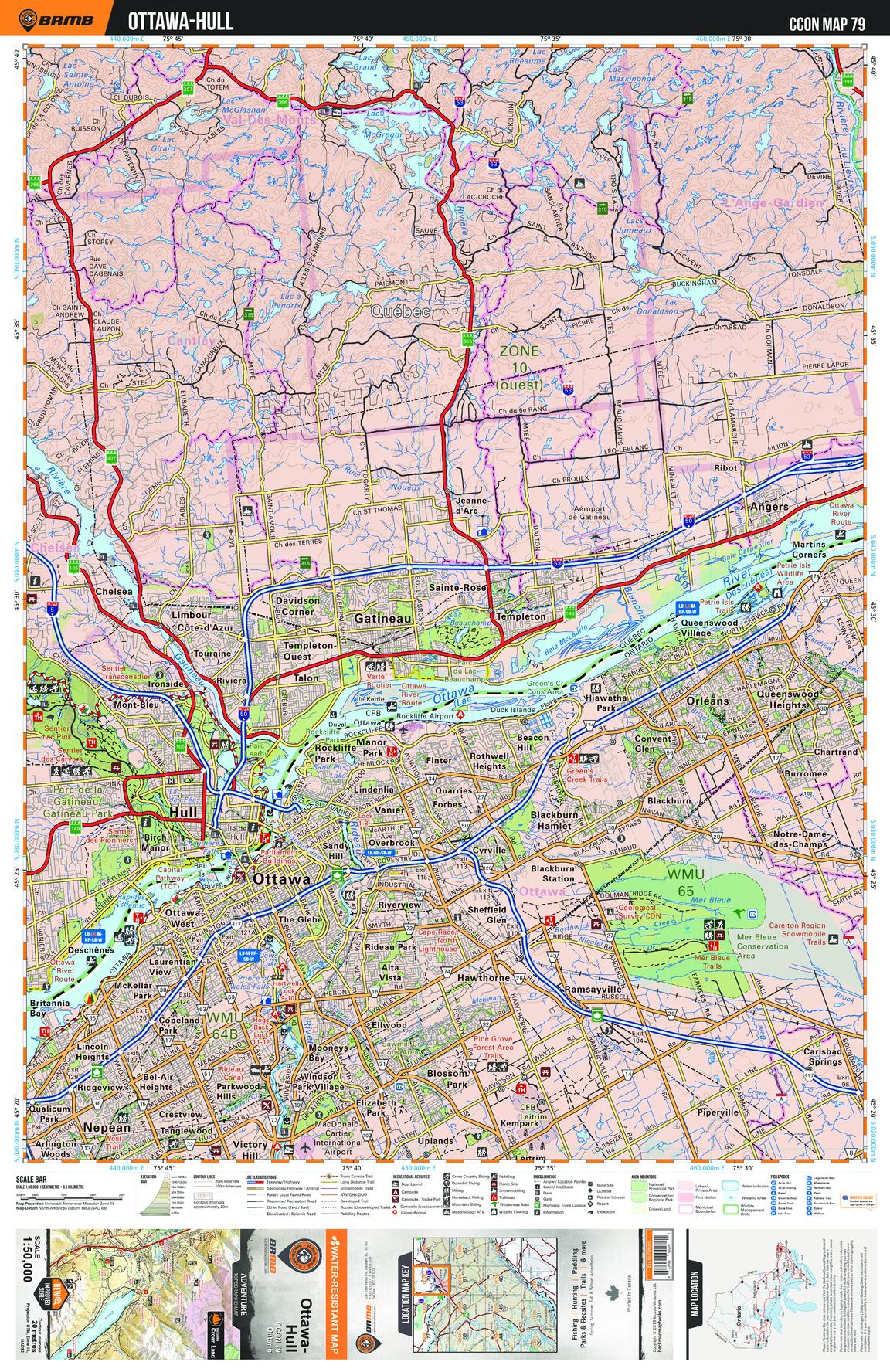 This recreation topographic map for Ottawa and Hull highlights all the logging/resource roads, hunting areas, fishing lakes & streams, campsites, paddling routes for canoeing and kayaking, wildlife viewing areas, multi-use trails for hiking, biking, horseback riding, cross-country skiing and snowshoeing, motorized trails for ATVing and snowmobiling & more. Covering 1,090 km2 (420 mi2), this 1:50,000 scale map measures 29 x 38 km (18 x 24 mi), providing you with more topographic and recreational detail for the Richmond Hill area than any other map on the market. New features include enhanced Crown land, countless new roads and trails and a wealth of recreational Points of Interest. Included on this map are Ottawa Hull, Ottawa, Blossom Park, Nepean, Orleans, Blackburn and more!