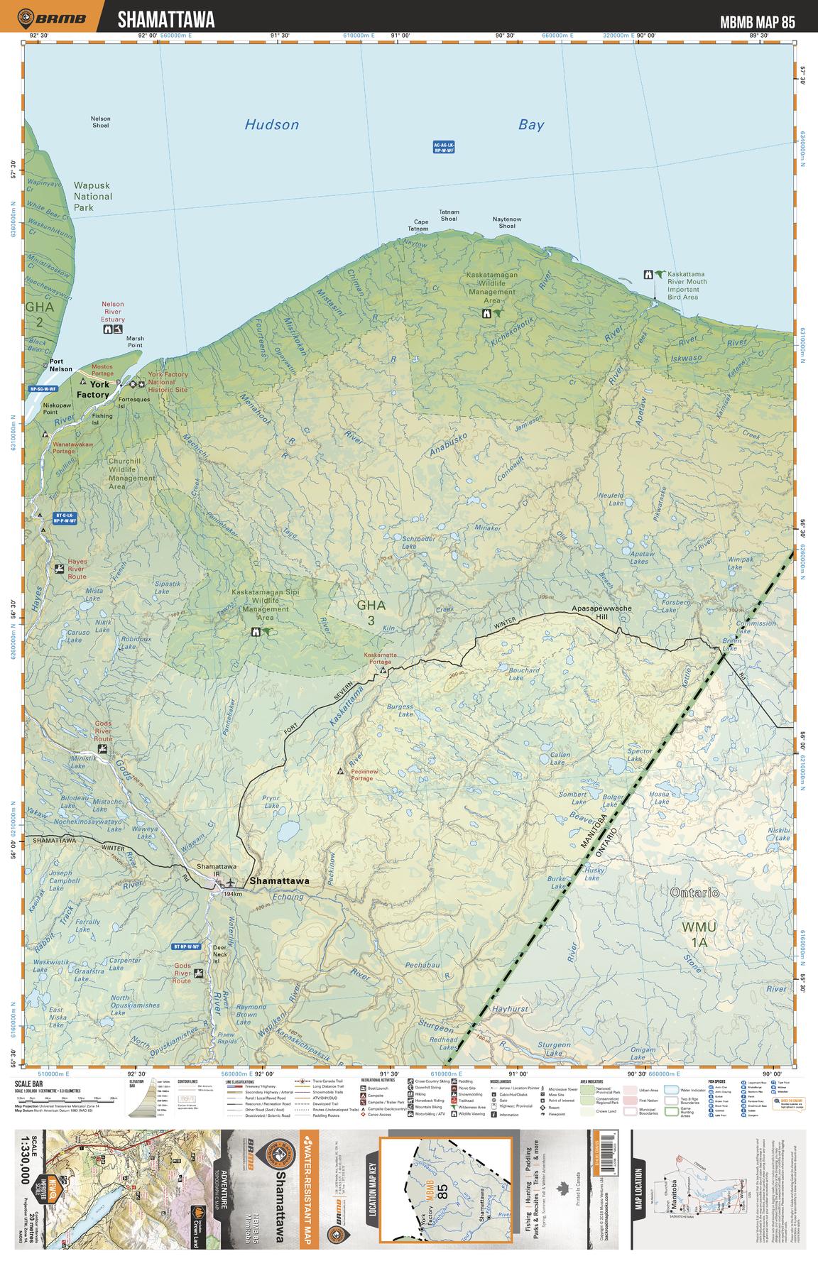 This recreation topographic map for Shamattawa highlights all the logging/resource roads, hunting areas, fishing lakes & streams, campsites, paddling routes for canoeing and kayaking, wildlife viewing areas, multi-use trails for hiking, biking, horseback riding, cross-country skiing and snowshoeing, motorized trails for ATVing and snowmobiling & more. Covering 49,475 km2 (19,100 mi2), this 1:330,000 scale map measures 193 x 256.5 km (120 x 159 mi), providing you with more topographic and recreational detail for the Gods Lake Narrows area than any other map on the market. New features include Crown land areas and labeled fish species, plus countless new trails, roads and recreational Points of Interest. Included on this map are Hudson Bay, Wapusk National Park, Gods River, Kaskatamagan Sipi Wildlife Management Unit, Cape Tatnam Wildlife Management Area, Churchill Wildlife Management Area, York Factory, Shamattawa, Hayes River, Kaskattama River and more!