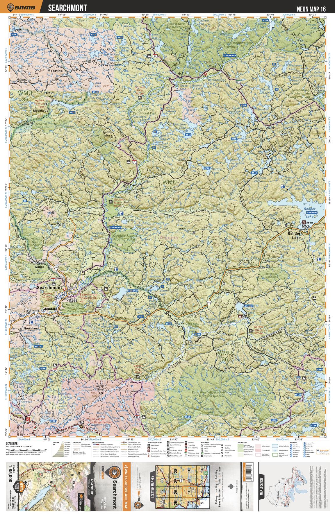 This recreation topographic map for Searchmont highlights all the logging/resource roads, hunting areas, fishing lakes & streams, campsites, paddling routes for canoeing and kayaking, wildlife viewing areas, multi-use trails for hiking, biking, horseback riding, cross-country skiing and snowshoeing, motorized trails for ATVing and snowmobiling & more. Covering 3,040 km2 (1,170 mi2), this 1:85,000 scale map measures 48 x 63.5 km (30 x 39.5 mi), providing you with more topographic and recreational detail for the Meldrum Bay area than any other map on the market. New features include Crown land areas, countless new roads and trails plus additional recreational Points of Interest. Included on this map are Ranger Lake, Searchmont, Echo River Hardwoods Cons Reserve, Garden River, Goulais River, Goulais River Prov Park, Algoma Headwaters Prov Park, Morrison Lake, Garden Lake, Trout Lake and more!