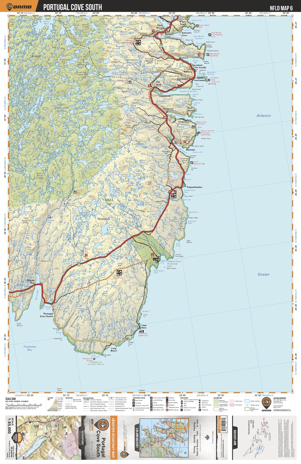 This recreation topographic map for Portugal Cove South highlights all the logging/resource roads, hunting areas, fishing lakes & streams, campsites, paddling routes for canoeing and kayaking, wildlife viewing areas, multi-use trails for hiking, biking, horseback riding, cross-country skiing and snowshoeing, motorized trails for ATVing and snowmobiling & more. Covering 3,040 km2 (1,170 mi2), this 1:85,000 scale map measures 48 x 63.5 km (30 x 39.5 mi), providing you with more topographic and recreational detail for the Fortune area than any other map on the market. Special features include countless roads, trails and recreational Points of Interest. Included on this map are Portugal Cove South, Chance Cove Provincial Park, Avalon Wilderness Reserve, Stevens Pond and more!