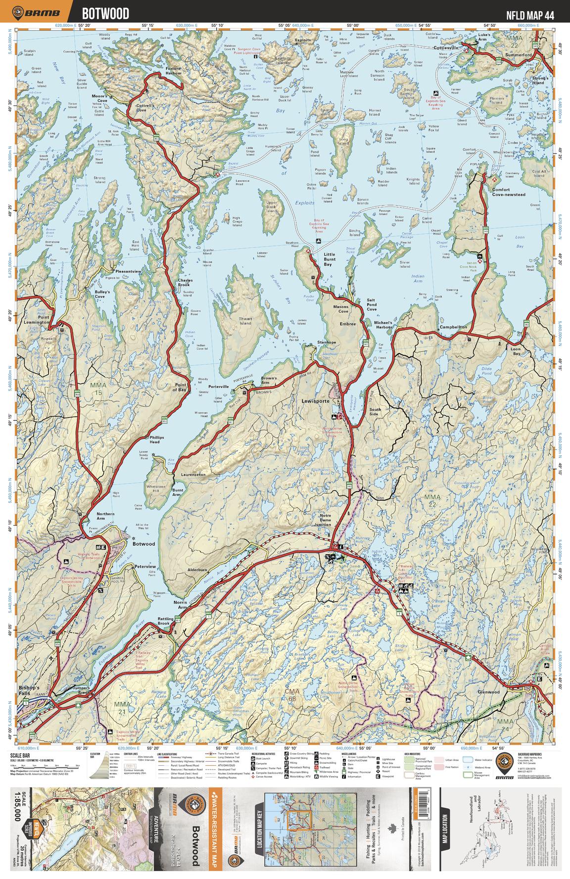 This recreation topographic map for Botwood highlights all the logging/resource roads, hunting areas, fishing lakes & streams, campsites, paddling routes for canoeing and kayaking, wildlife viewing areas, multi-use trails for hiking, biking, horseback riding, cross-country skiing and snowshoeing, motorized trails for ATVing and snowmobiling & more. Covering 3,040 km2 (1,170 mi2), this 1:85,000 scale map measures 48 x 63.5 km (30 x 39.5 mi), providing you with more topographic and recreational detail for the Fortune area than any other map on the market. Special features include countless roads, trails and recreational Points of Interest. Included on this map are Botwood, Bay OF Exploits, Indian Cove Neck Park, Loon Bay, Indian Arm Pond, Dildo Pond, Indian Arm and more!