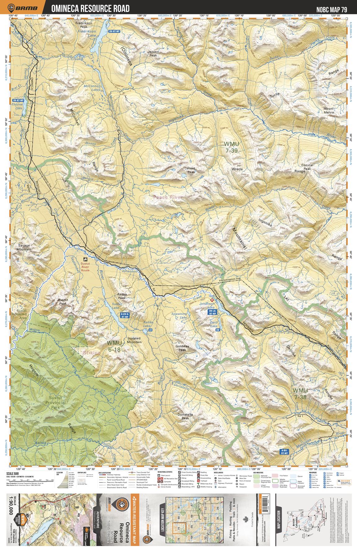 This recreation topographic map for the Omineca Resource Road area highlights all the logging and resource roads, recreational features and trails for hiking, mountain biking, ATVing, snowmobiling, skiing, snowshoeing, fishing, camping, hunting, canoeing, kayaking, wildlife viewing and more. New features include private land and labelled fish species, plus new roads, recreational trails and Points of Interest. No other map for the area provides you with this level of recreational or topographic detail. Measuring 52.5 x 70 km (32.5 x 43.5 mi), this 1:90,000 scale map covers 3,680 km2 (1,420 mi2) in total and includes Omineca Resource Road, Sustut Provincial Park, Fredrikson Lake, McConnell Lakes, Asitka Lake, Ingenika River, Moosevale Creek, Sustut Lake, Johanson Lake, Mesilinka River and more!