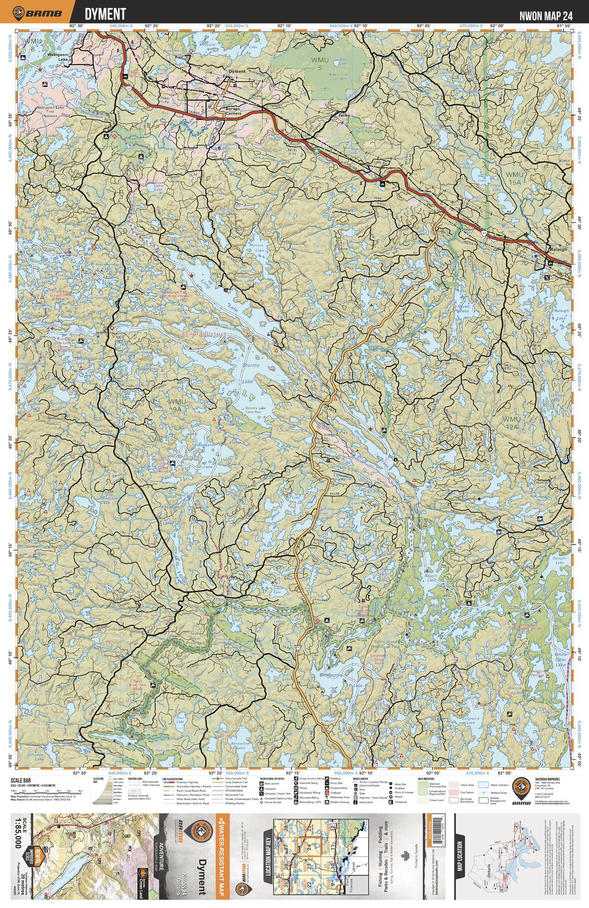 This recreation topographic map for Dyment highlights all the logging/resource roads, hunting areas, fishing lakes & streams, campsites, paddling routes for canoeing and kayaking, wildlife viewing areas, multi-use trails for hiking, biking, horseback riding, cross-country skiing and snowshoeing, motorized trails for ATVing and snowmobiling & more. Covering 3,040 km2 (1,175 mi2), this 1:85,000 scale map measures 48 x 63.5 km (30 x 39.5 mi), providing you with more topographic and recreational detail for the Lac La Croix area than any other map on the market. New features include expanded road and trail data and countless recreational Points of Interest. Included on this map are Dyment, Adair Lake Conservation Reservation, Stormy Lake, Trutle River Provincial Park, Turtle River, Pyatt Lake Conservation Area and more!