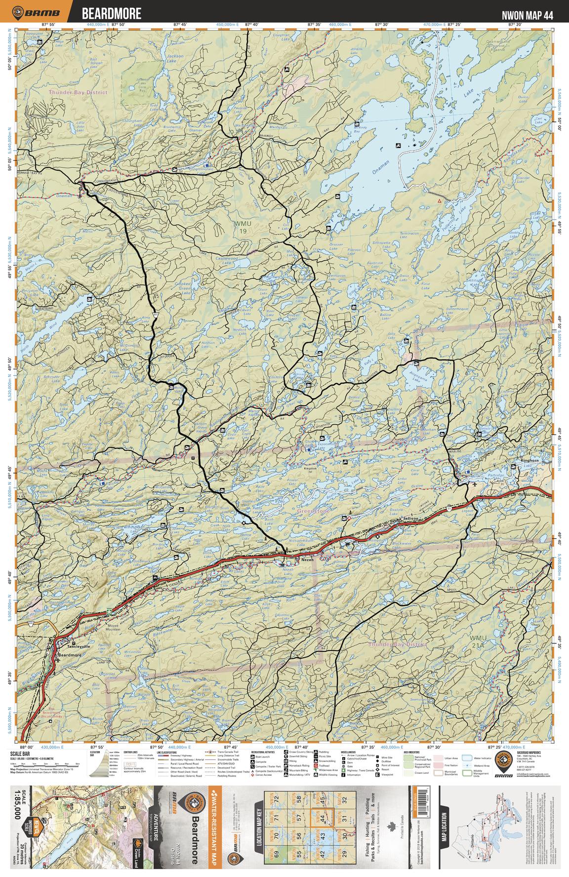 This recreation topographic map for Beardmore highlights all the logging/resource roads, hunting areas, fishing lakes & streams, campsites, paddling routes for canoeing and kayaking, wildlife viewing areas, multi-use trails for hiking, biking, horseback riding, cross-country skiing and snowshoeing, motorized trails for ATVing and snowmobiling & more. Covering 3,040 km2 (1,175 mi2), this 1:85,000 scale map measures 48 x 63.5 km (30 x 39.5 mi), providing you with more topographic and recreational detail for the Lac La Croix area than any other map on the market. New features include expanded road and trail data and countless recreational Points of Interest. Included on this map are Beardmore, Onaman Lake, Namewaminikan River, Blackwater River, North Wind Lake, Partridge Lake, Onaman Lake Conservation Area and more!