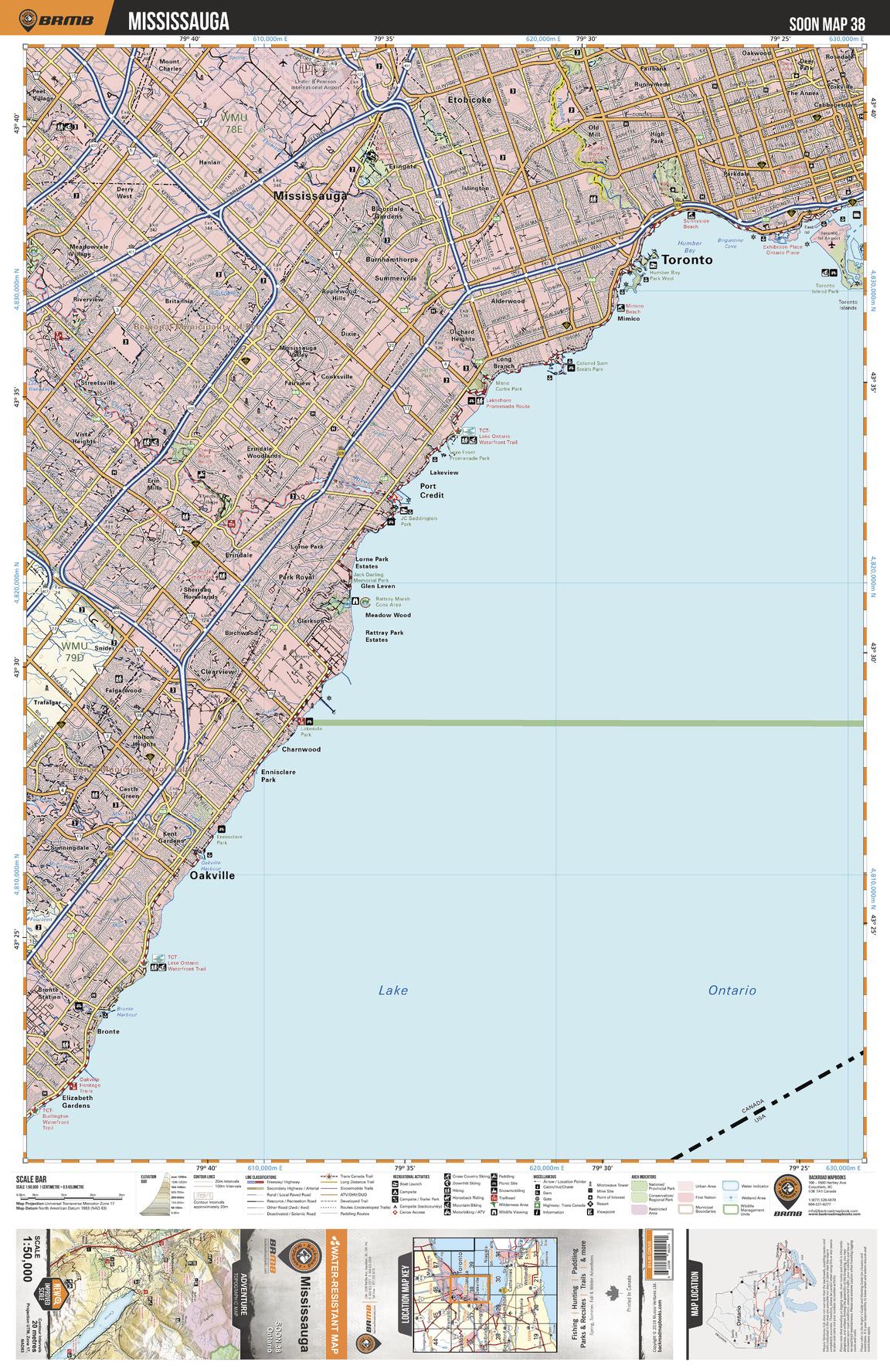 This recreation topographic map for Mississauga highlights all the logging/resource roads, hunting areas, fishing lakes & streams, campsites, paddling routes for canoeing and kayaking, wildlife viewing areas, multi-use trails for hiking, biking, horseback riding, cross-country skiing and snowshoeing, motorized trails for ATVing and snowmobiling & more. Covering 1,090 km2 (420 mi2), this 1:50,000 scale map measures 29 x 38 km (18 x 24 mi), providing you with more topographic and recreational detail for the Niagara-on-the-Lake area than any other map on the market. New features include expanded road and trail data and countless recreational Points of Interest. Included on this map are Lake Ontario, Toronto, Oakville, Mississauga, Port Credit, Etobicoke and more.