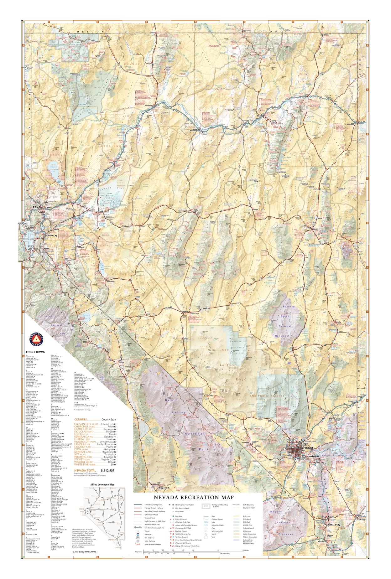 Nevada’s desert landscapes can seem desolate, but there are world-class recreation oases throughout including Great Basin National Park, Lake Tahoe, Las Vegas, and the Black Rock Desert. This wall map illustrates the diversity of public lands and roadways that make The Silver State a delight for travelers looking for something different.