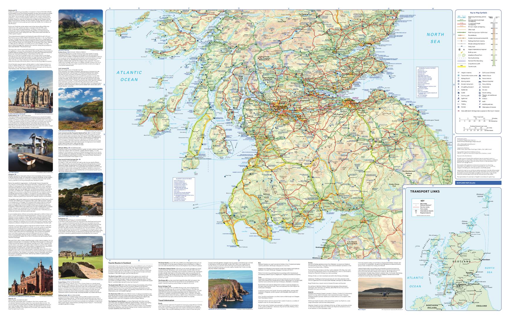 Full colour map of Southern Scotland. Detailed mapping of the Central Belt, Argyll & Bute, Ayrshire, Dumfries & Galloway, Scottish Borders, Stirling, Perth & Kinross and Angus. Includes photographs and further information for selected places of interest.