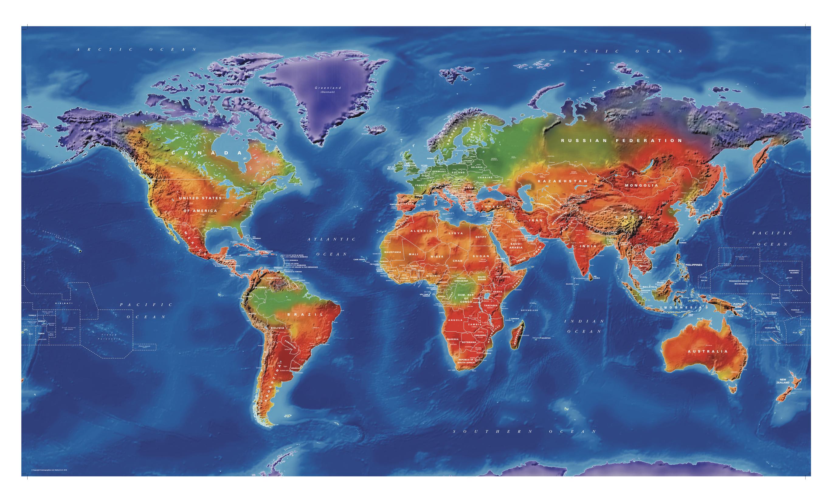 World political mapping and vibrant colours combine to make this beautiful, colourful map with a difference.Page Size: 53.5 x 30.5 in (1354 x 774 mm)