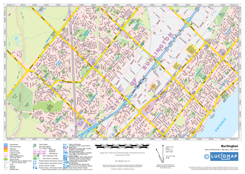 Create custom street maps in Montreal centred on your business, home or other key point of interest. Maps are developed from Lucidmap’s iconic Canadian street mapping cartography. Coverage is of the Halton Regional Municipality including the City of Burlington, and the towns of Oakville and Halton Hills. Native scale is 1:25,000.