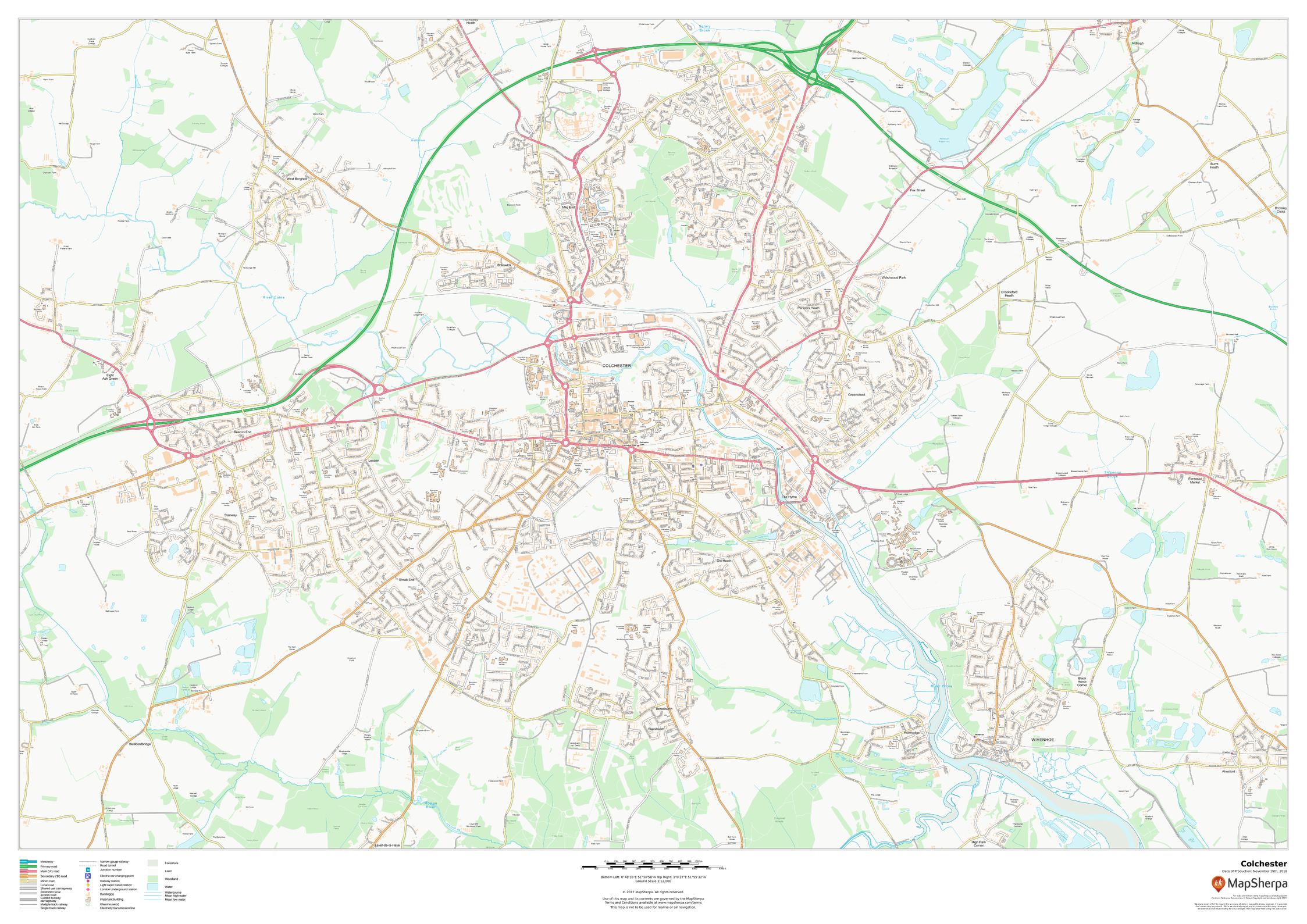 This map of Colchester shows detailed street level information including extensive street labelling. Ideal for planning of deliveries, home services, sales territories, real estate and much more.