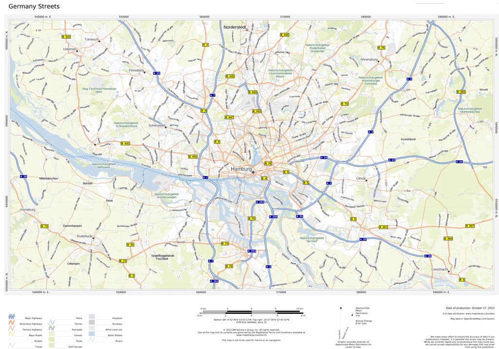 Multi-scale product for Germany based on OpenStreetMap content. Appropriate for street, city and regional level mapping starting from 1:10,000 and up.