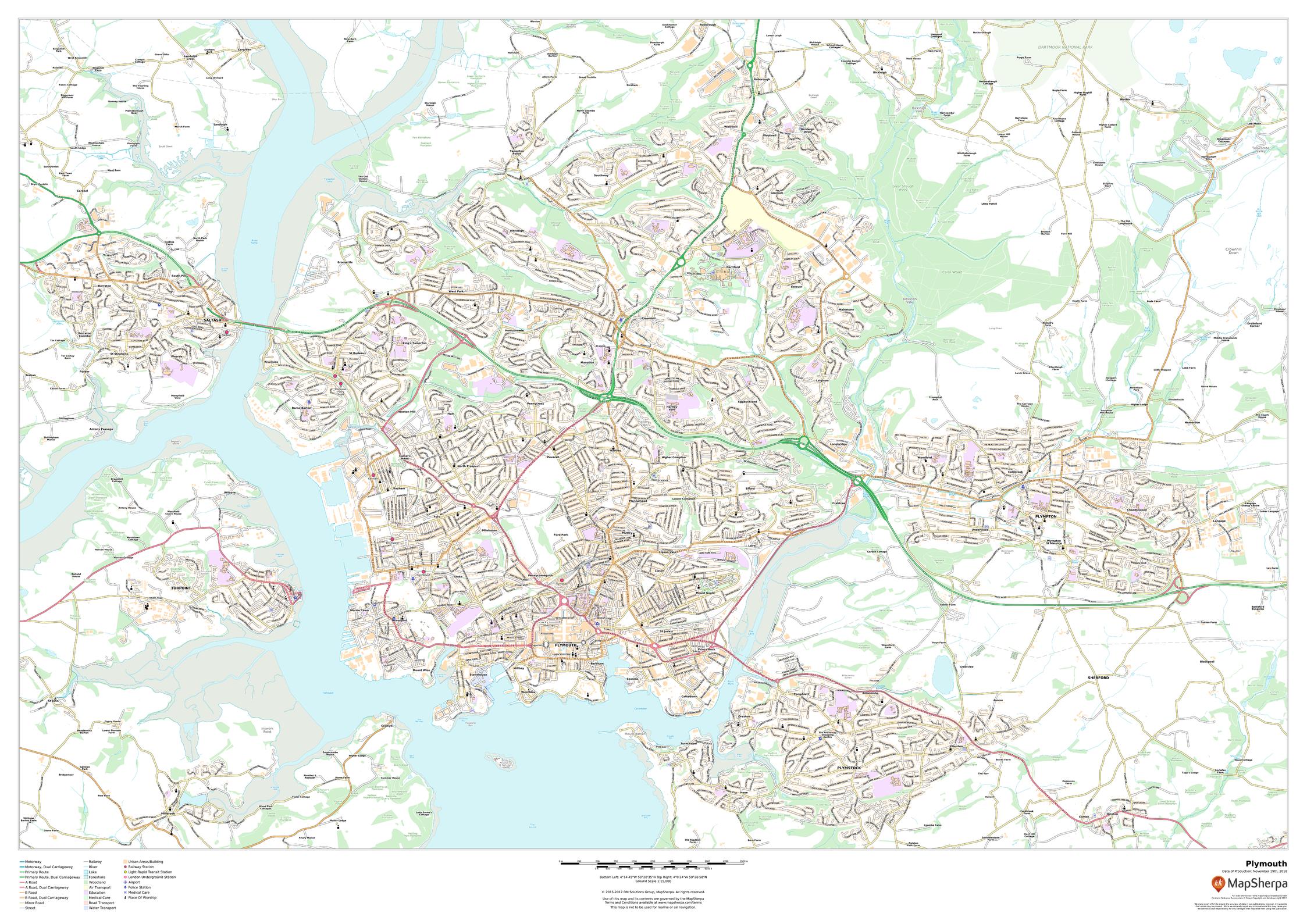 This map of Plymouth shows detailed street level information including extensive street labelling. Ideal for planning of deliveries, home services, sales territories, real estate and much more.