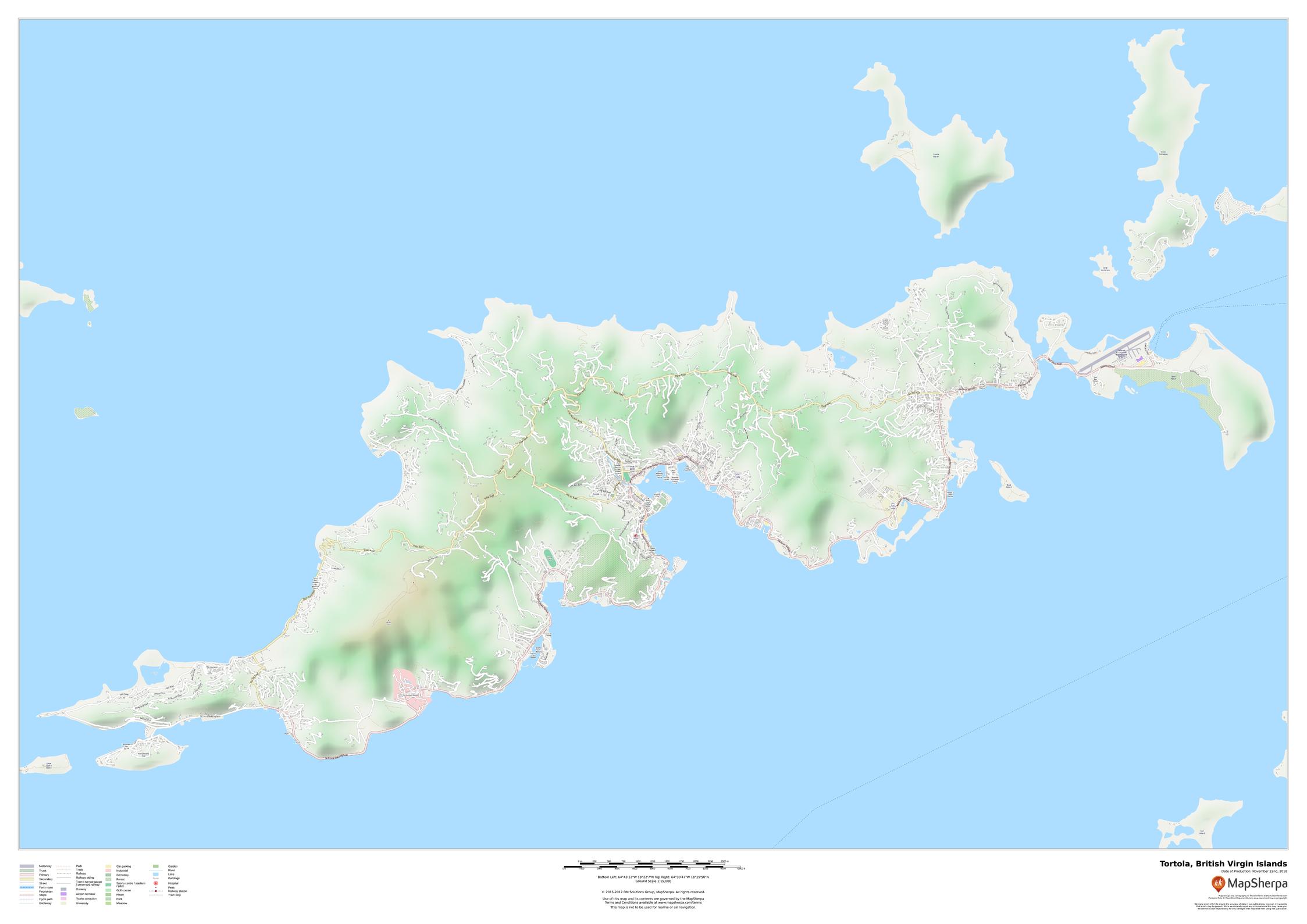 This map of the Tortola features a full road network for the island including the capital The Valley, walking paths, land use, points of interest, and many of the buildings. Useful for the traveller, and as a wall map for display in your home.