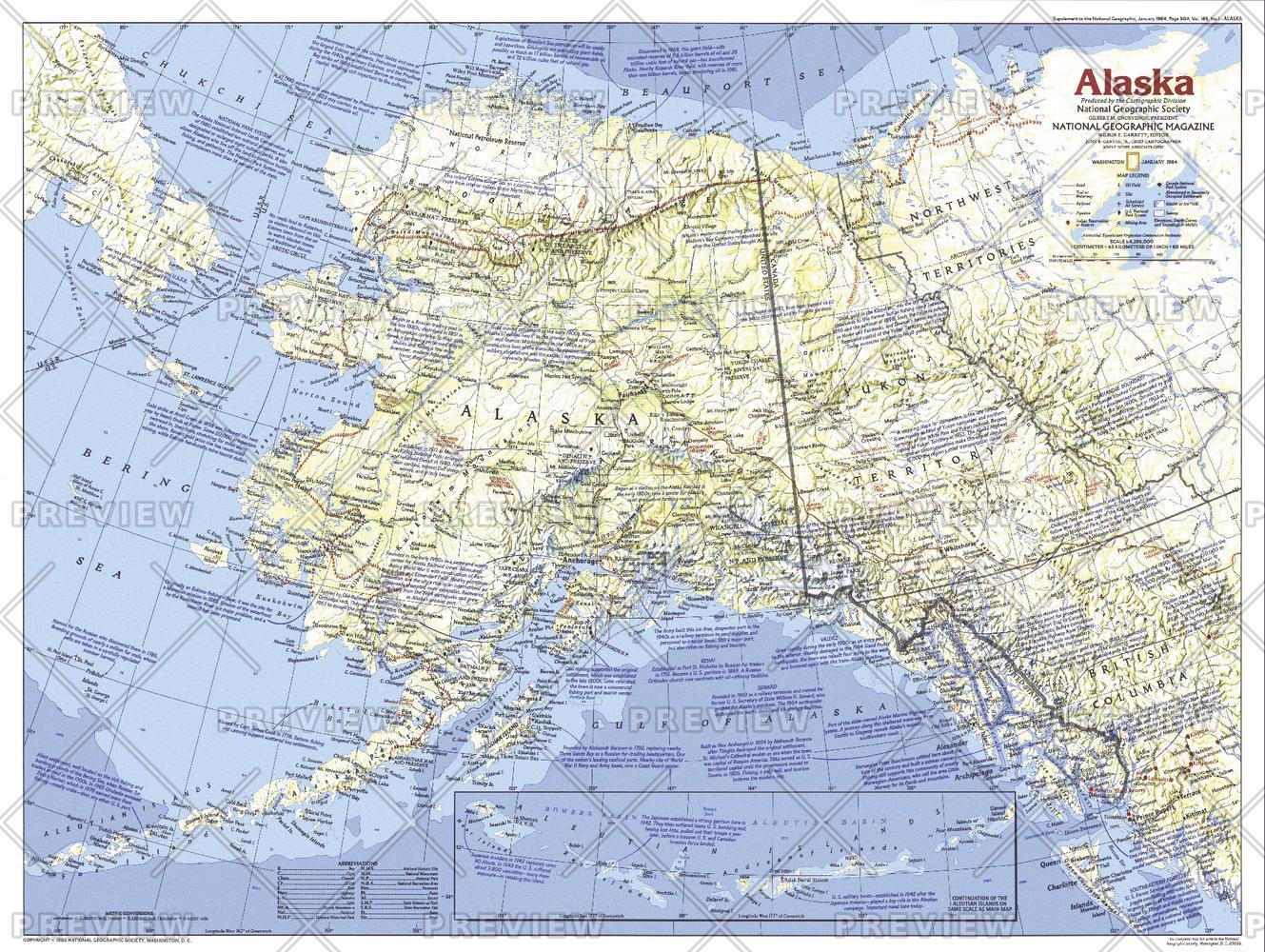 The largest state in the United States, Alaska is home to some of the most pristine wilderness in the world. Explore the region with this informative map, featuring attractive mountain relief and a wealth of historical notes. Published in 1984 as part of the "Making of America" series.