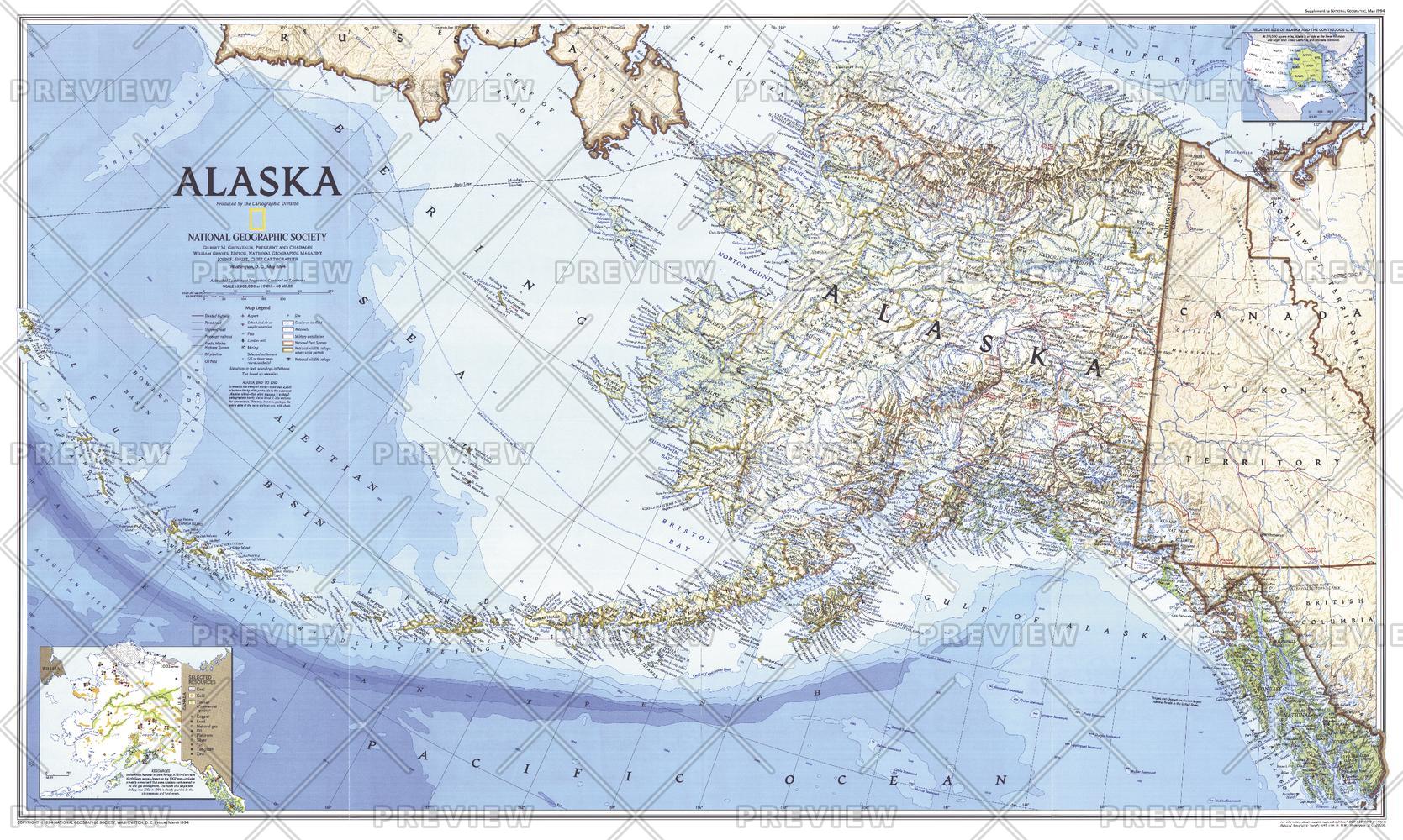 Cartographers usually break Alaska up into sections, but this unique map shows all of the state, more than 2,200 miles from the tip of the panhandle to the outermost Aleutian Island, in the same scale on one, wide sheet. Published in May 1994.