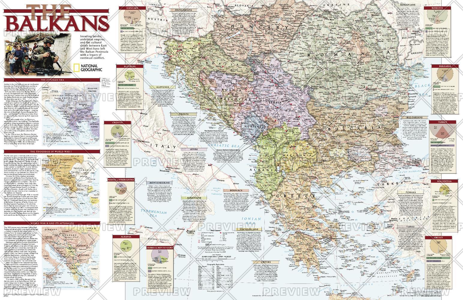 Study the countries of the Balkans with this up-close, detailed look at political boundaries for the region, as well as country flags and facts, history, and helpful inset maps.