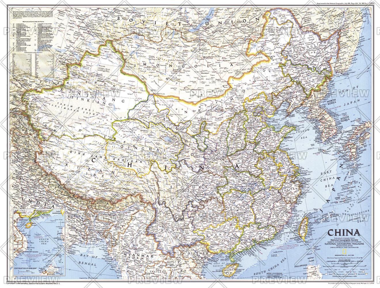 This detailed map of China displays the political boundaries of the most populous nation in the world. Published in July 1991 as a companion to the article entitled "China's Youth Wait for Tomorrow."