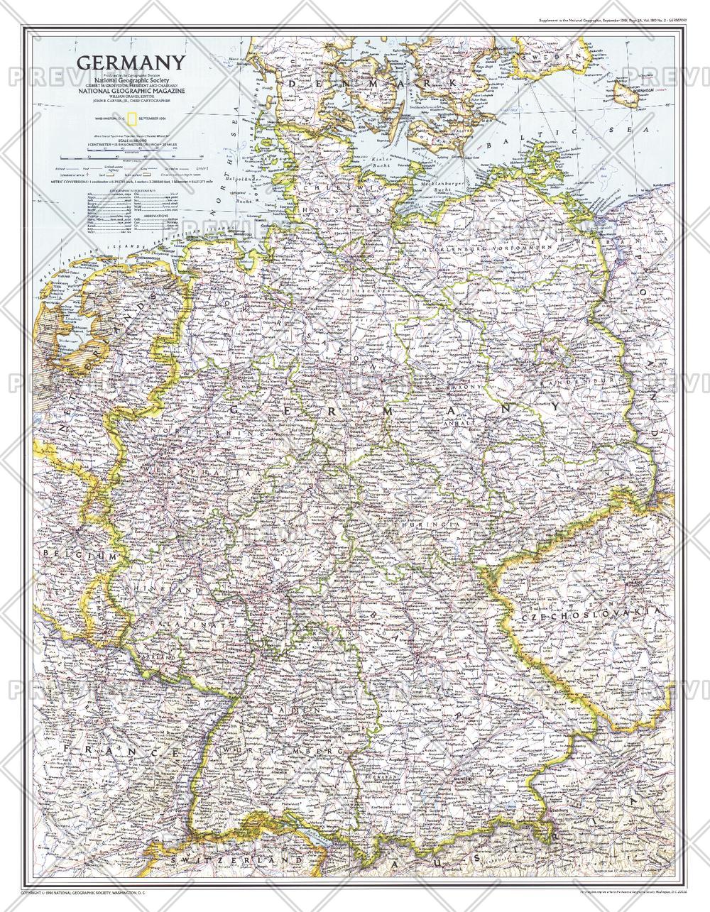 This map shows the political boundaries of Germany after the fall of the Berlin Wall and the country's reunification after the Cold War. Published in September 1991 with the companion map "Travelers Map of Germany" and the article "The Morning After: Germany Reunited".