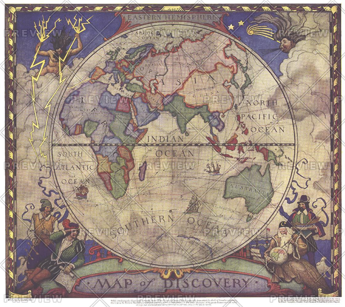 Map of Discovery, Eastern Hemisphere - Published 1928