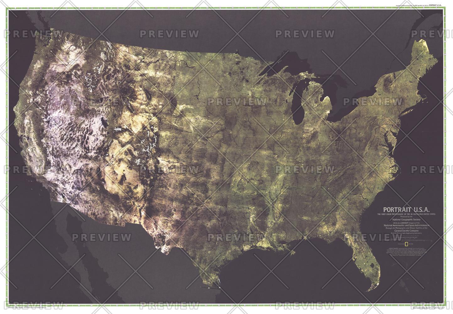 The first color satellite photomosaic of the 48 contiguous United States, this landmark map was published in July of 1976. The near-true color imagery creates a portrait of the patchwork quilt of the entire country. Trace the Mississippi river from its source to the Gulf of Mexico. See the deserts of New Mexico, Arizona, and California. Follow the Rocky Mountains through the western states. A cartographic benchmark, this map laid the groundwork for the many that have followed.