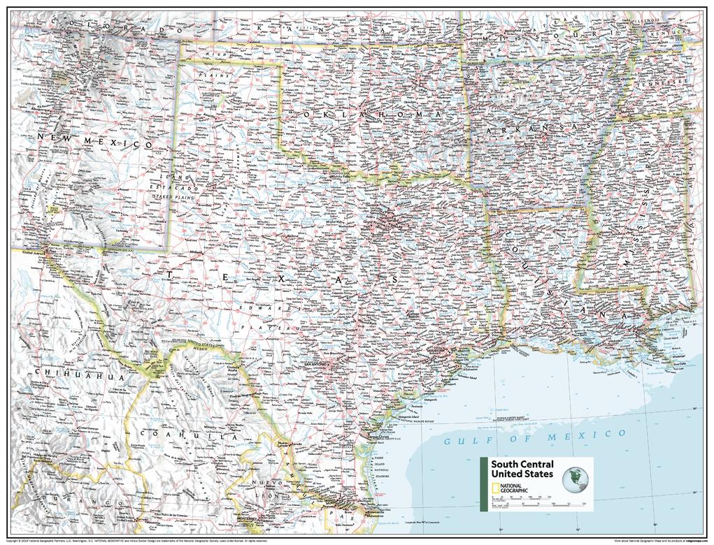 This South Central USA map of physical and political features can fit in any space. Showcasing the region in stunning detail with state-of-the-art cartographic techniques delivering accuracy and exceptional quality, the innovative and engaging design makes the content easily accessible and user-friendly.