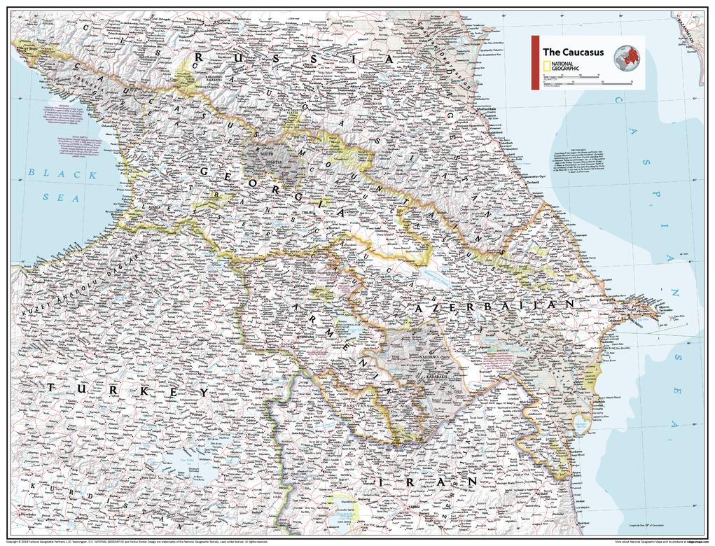 This Caucasus area map of physical and political features can fit in any space. Showcasing the region in stunning detail with state-of-the-art cartographic techniques delivering accuracy and exceptional quality, the innovative and engaging design makes the content easily accessible and user-friendly.