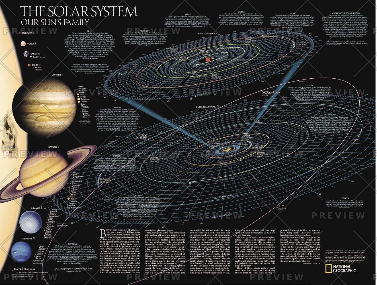 The Solar System, Our Sun's Family has two sides. The first side includes a description of how our solar system was formed, and shows a map of our solar system, with each planet's orbit in relation to the Sun and to the other planets. Interesting facts and figures accompany each planet's description. Side two is a stunning poster that shows images of each planet.