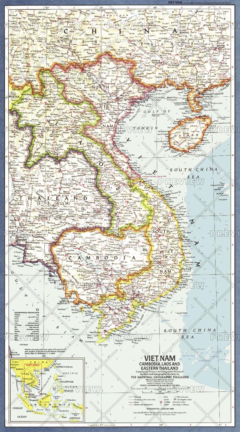 Vietnam, Cambodia, Laos and Eastern Thailand - Published 1965