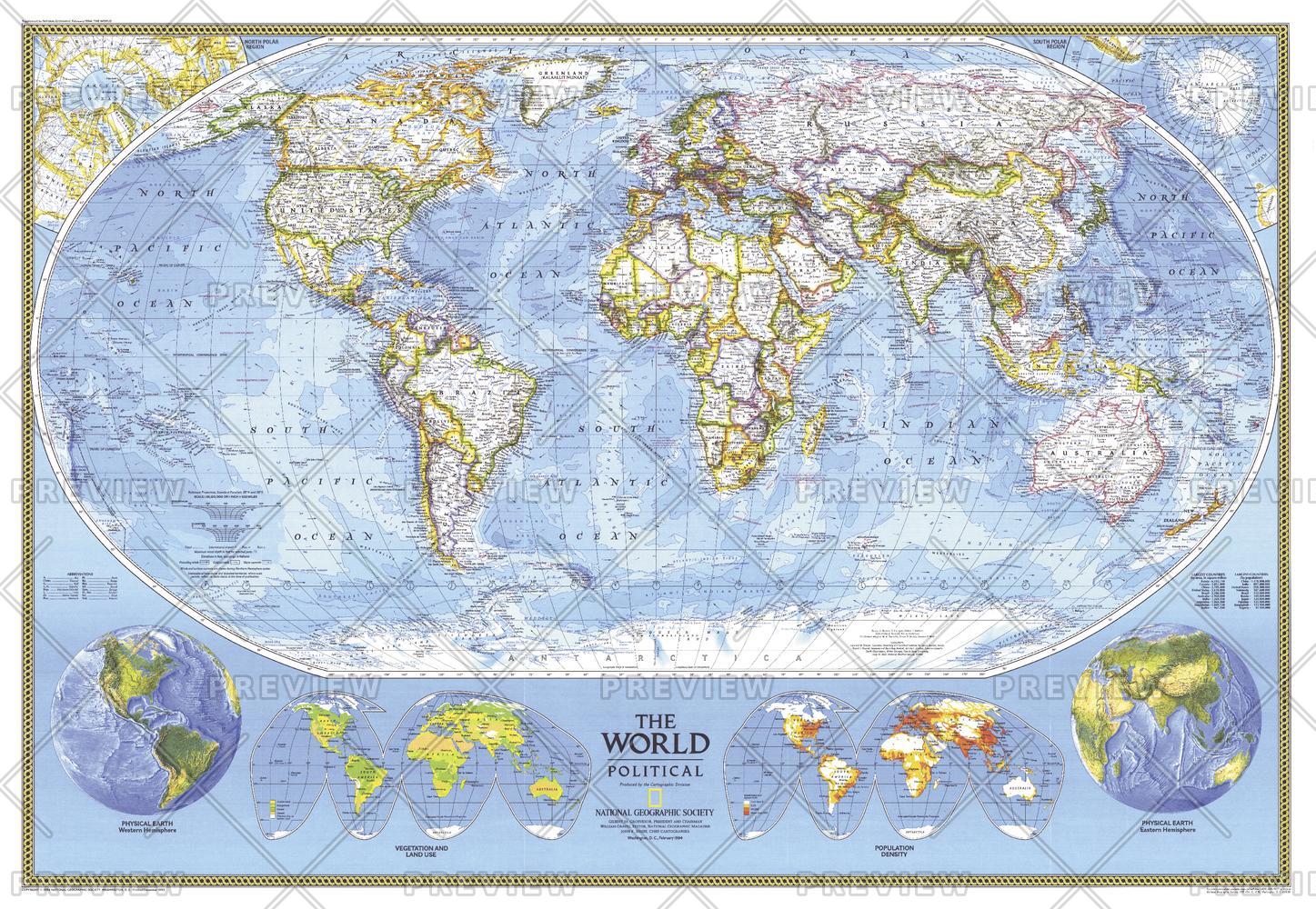 This political world map continues the long tradition of fine cartography for which National Geographic is known. Published in 1994.