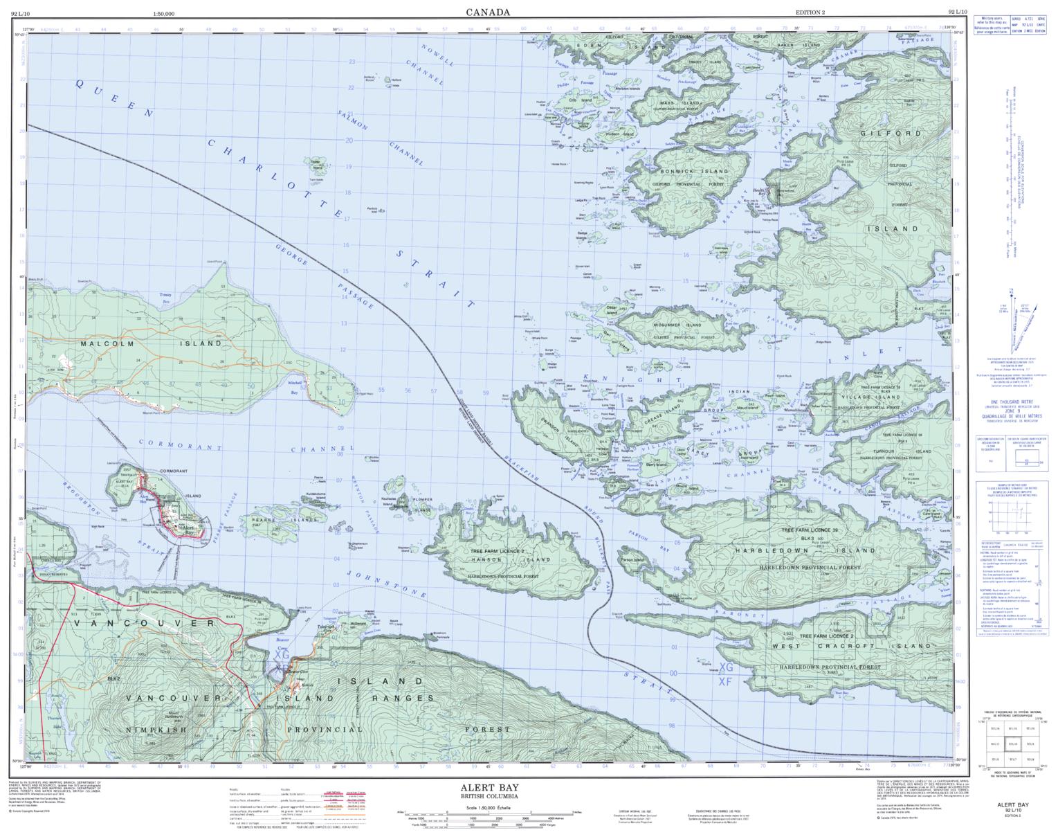 Canadian topographic map of Alert Bay, British Columbia. NTS sheet 092L10 Edition 2.Page Size: 32 x 25.25 in (809 x 640 mm)