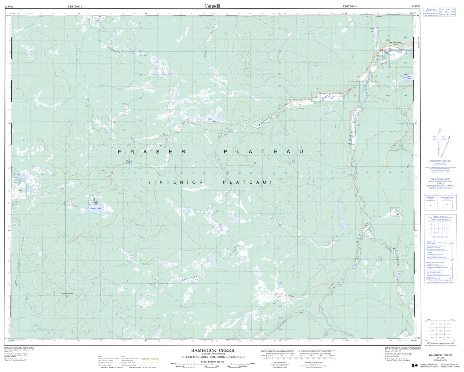 Canadian topographic map of Bambrick Creek, British Columbia. NTS sheet 092O11 Edition 2.
