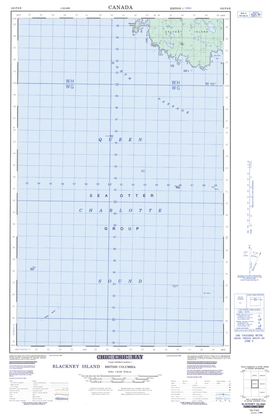 Canadian topographic map of Blackney Island, British Columbia. NTS sheet 102P08 E Edition 1.