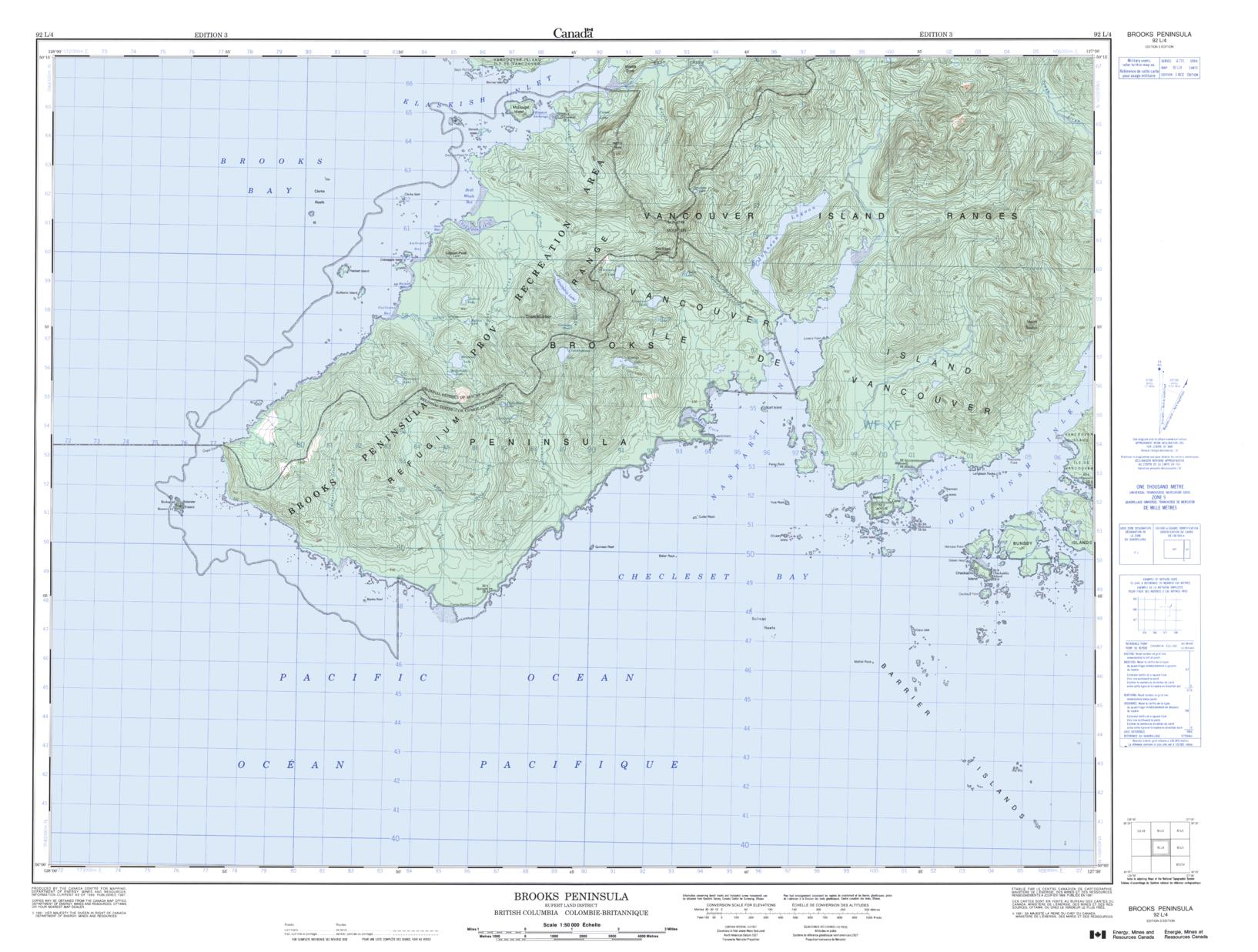 Canadian topographic map of Brooks Peninsula, British Columbia. NTS sheet 092L04 Edition 3.