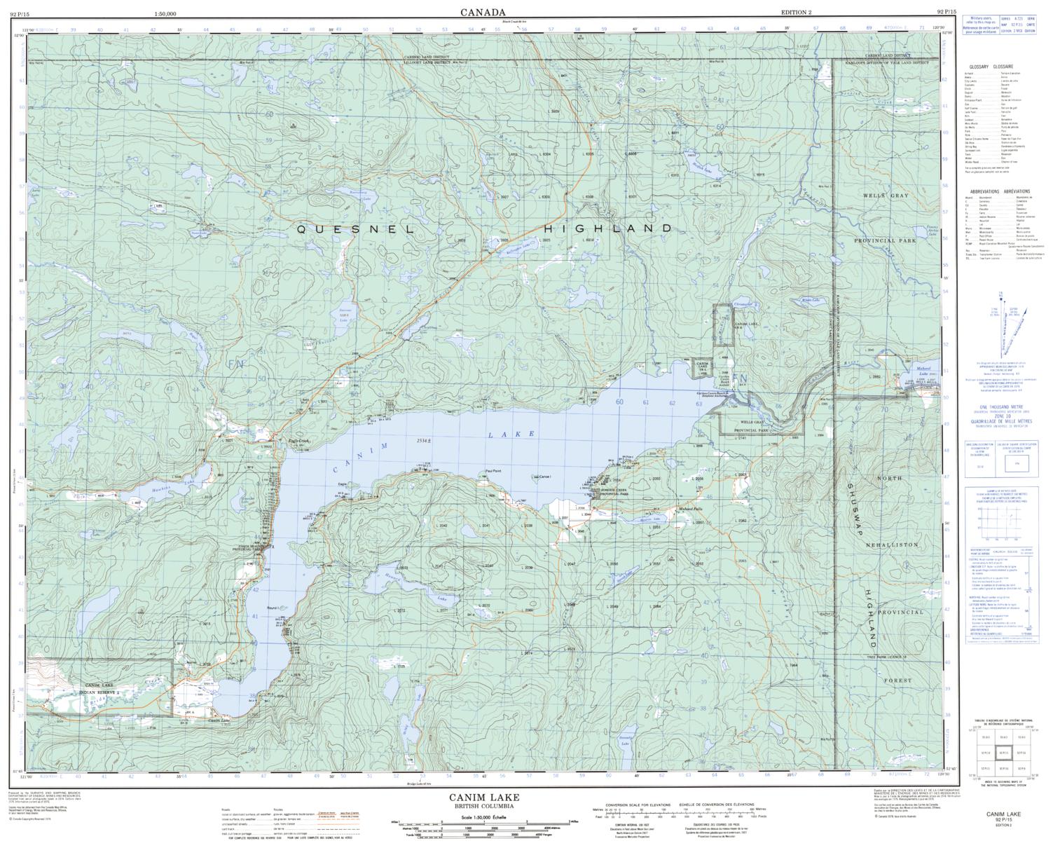 Canadian topographic map of Canim Lake, British Columbia. NTS sheet 092P15 Edition 2.