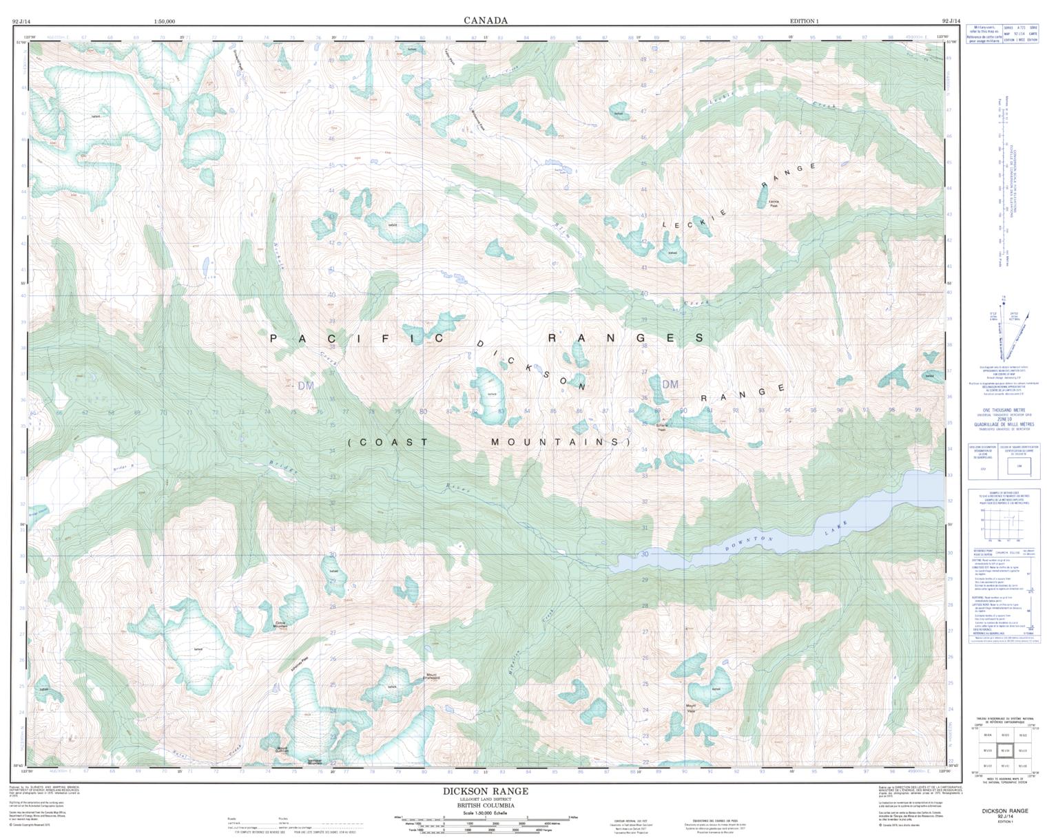 Canadian topographic map of Dickson Range, British Columbia. NTS sheet 092J14 Edition 1.