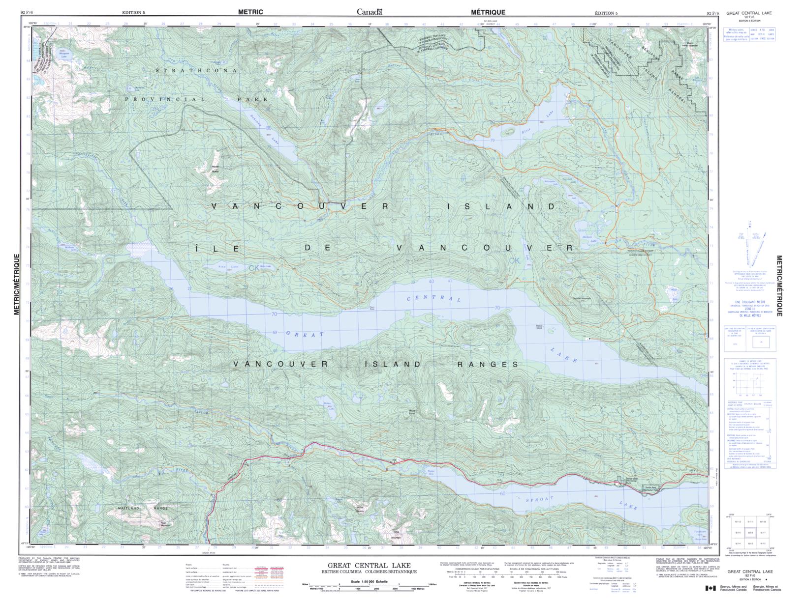 Canadian topographic map of Great Central Lake, British Columbia. NTS sheet 092F06 Edition 5.