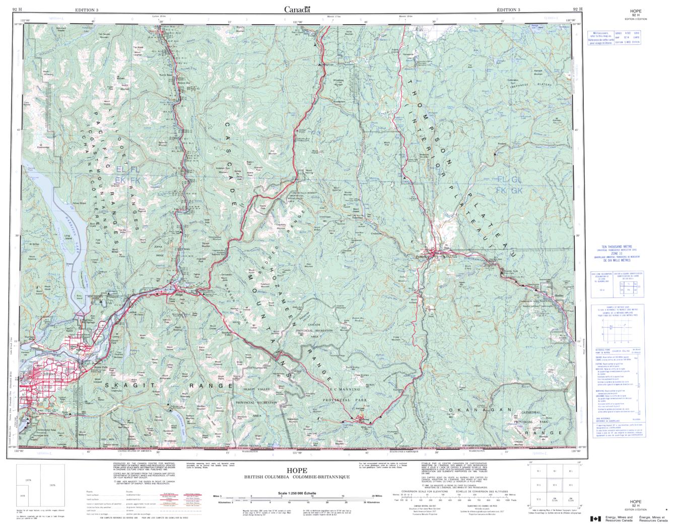 Canadian topographic map of Hope, British Columbia. NTS sheet 092H Edition 3.