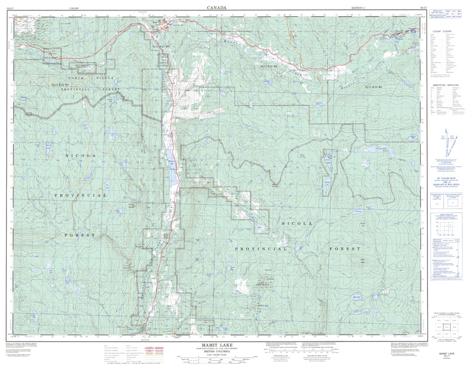 Canadian topographic map of Mamit Lake, British Columbia. NTS sheet 092I07 Edition 2.