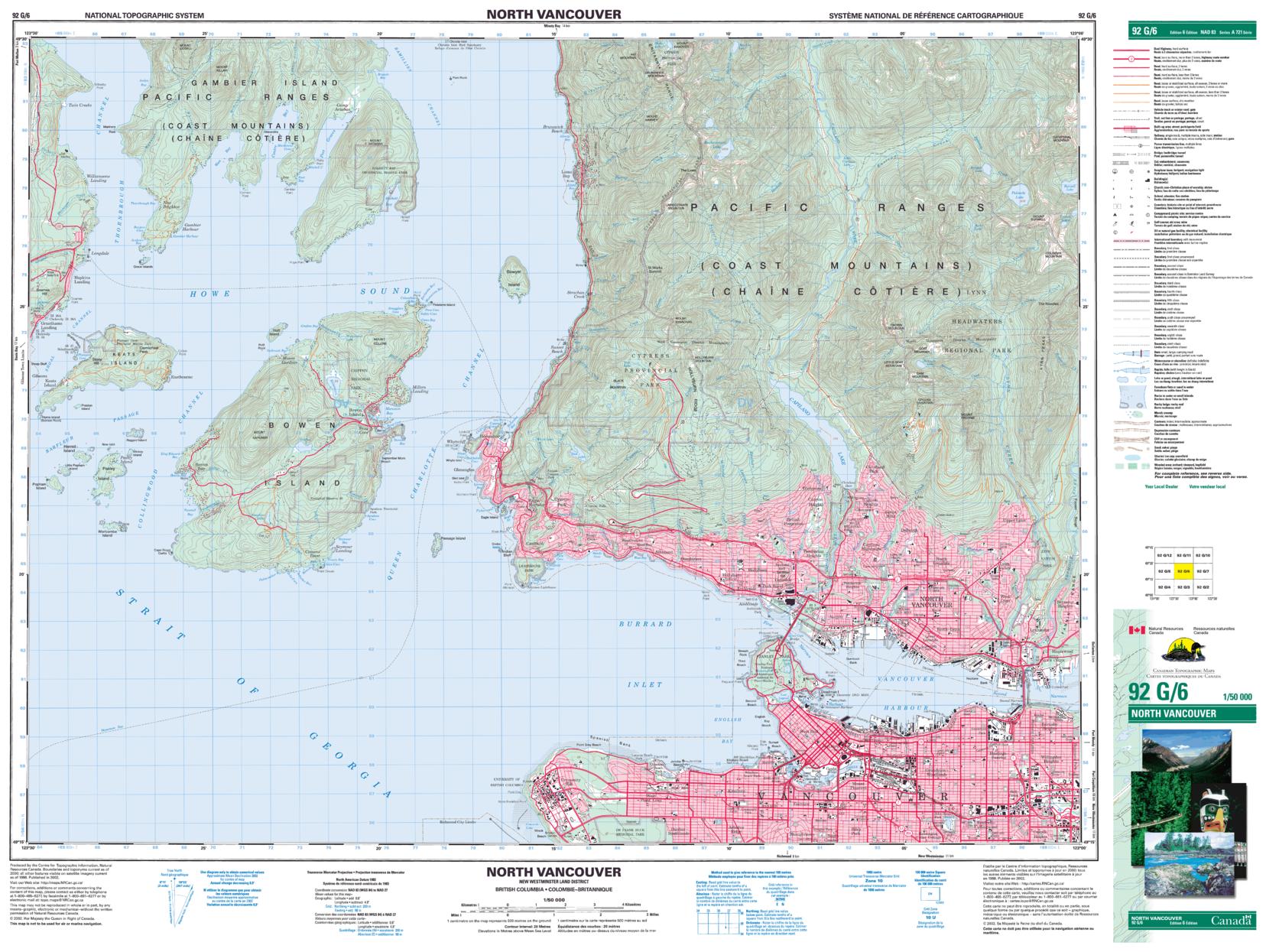 Canadian topographic map of North Vancouver, British Columbia. NTS sheet 092G06 Edition 6.