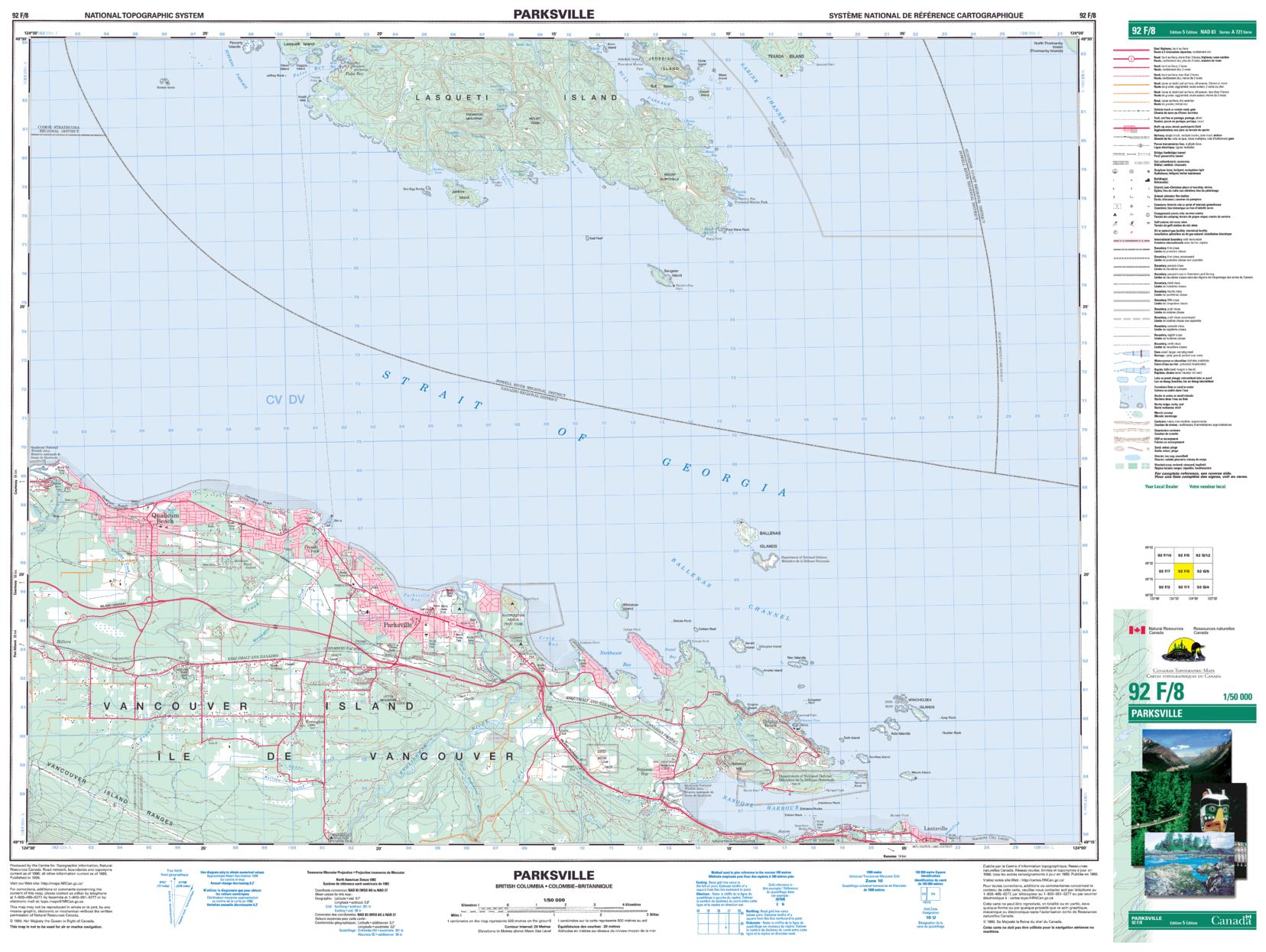 Canadian topographic map of Parksville, British Columbia. NTS sheet 092F08 Edition 5.
