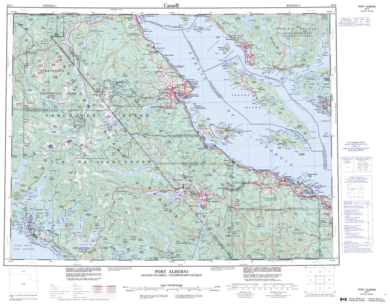 Canadian topographic map of Port Alberni, British Columbia. NTS sheet 092F Edition 4.