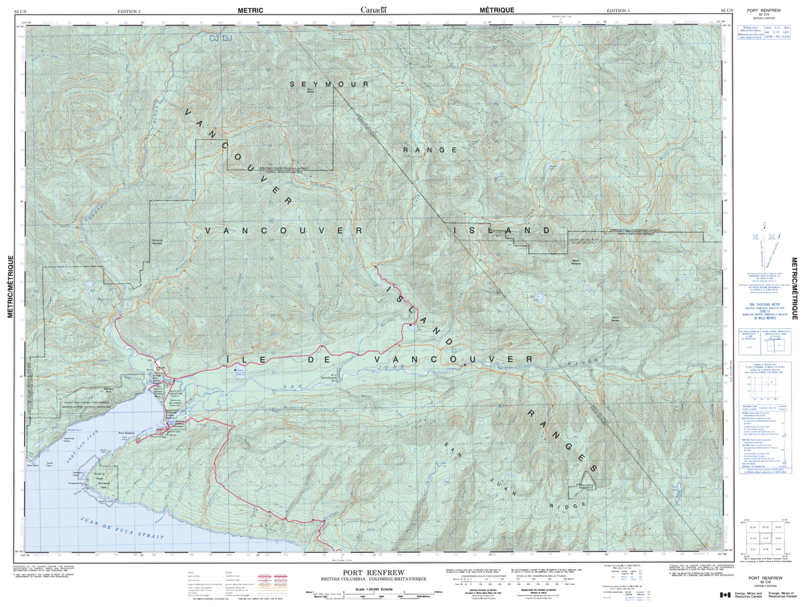 Canadian topographic map of Port Renfrew, British Columbia. NTS sheet 092C09 Edition 5.