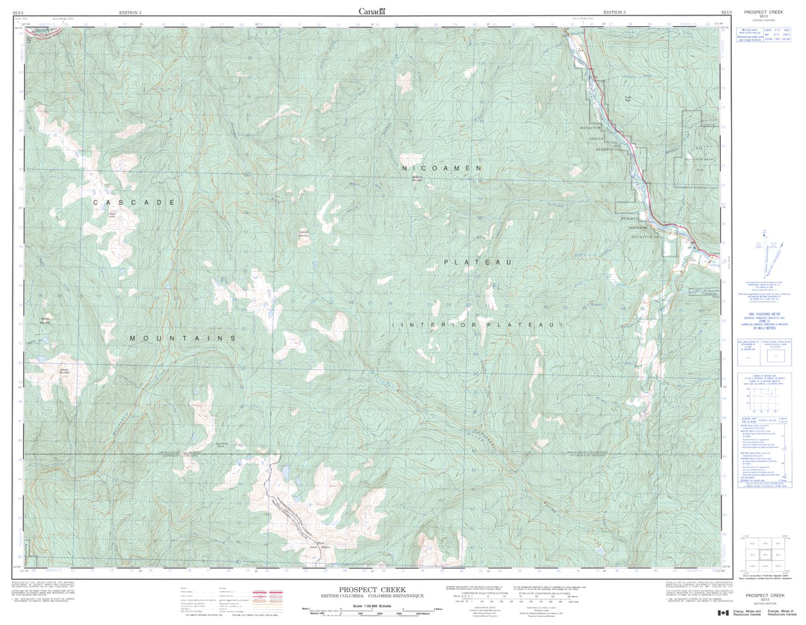 Canadian topographic map of Prospect Creek, British Columbia. NTS sheet 092I03 Edition 3.