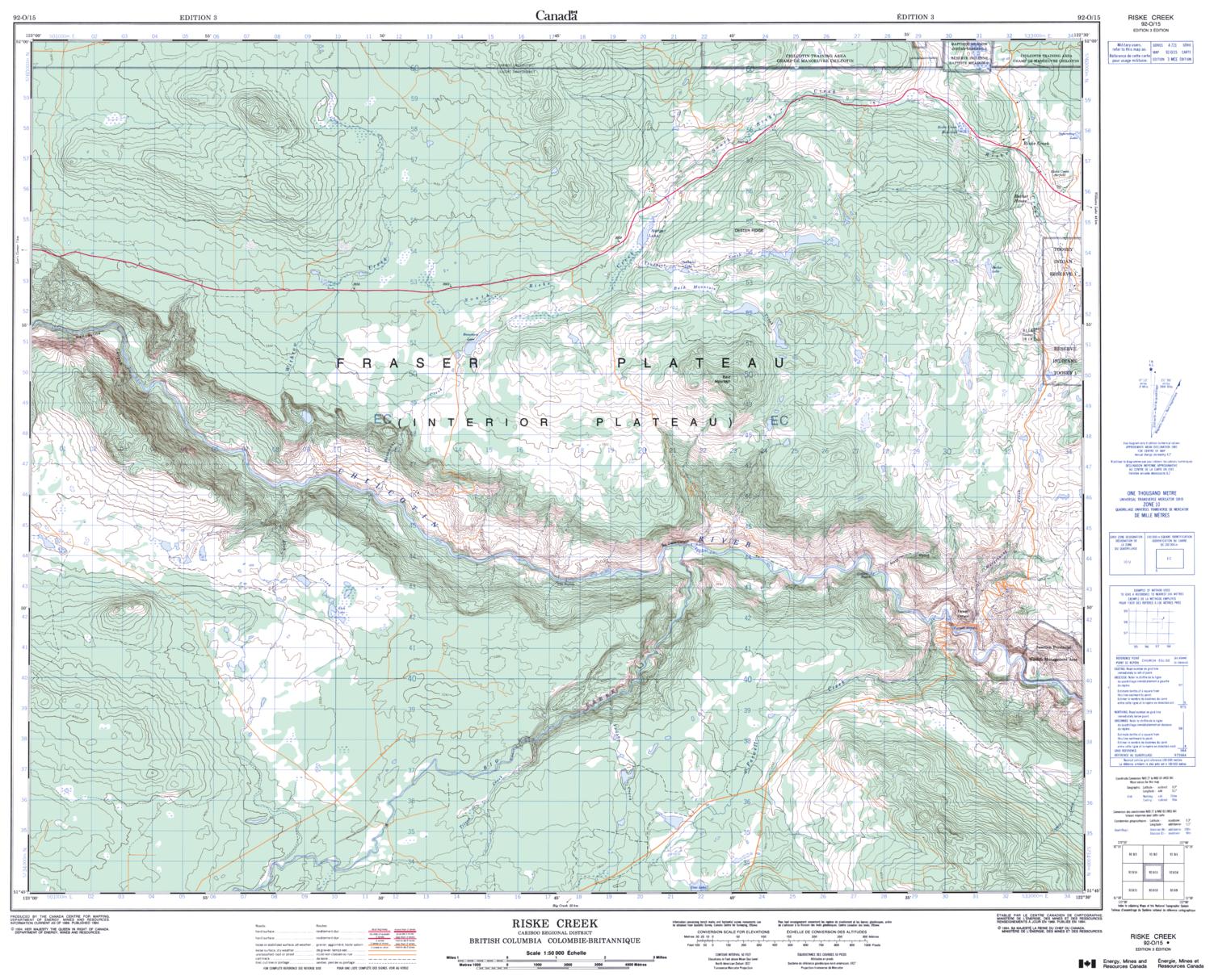 Canadian topographic map of Riske Creek, British Columbia. NTS sheet 092O15 Edition 3.