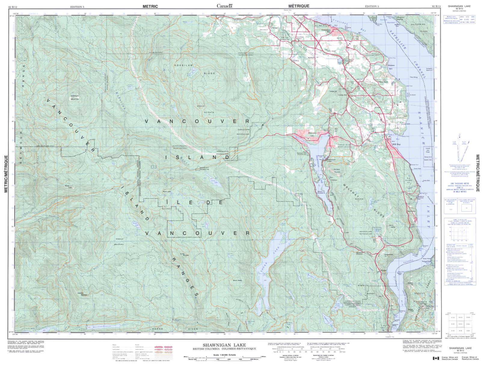 Canadian topographic map of Shawnigan Lake, British Columbia. NTS sheet 092B12 Edition 5.