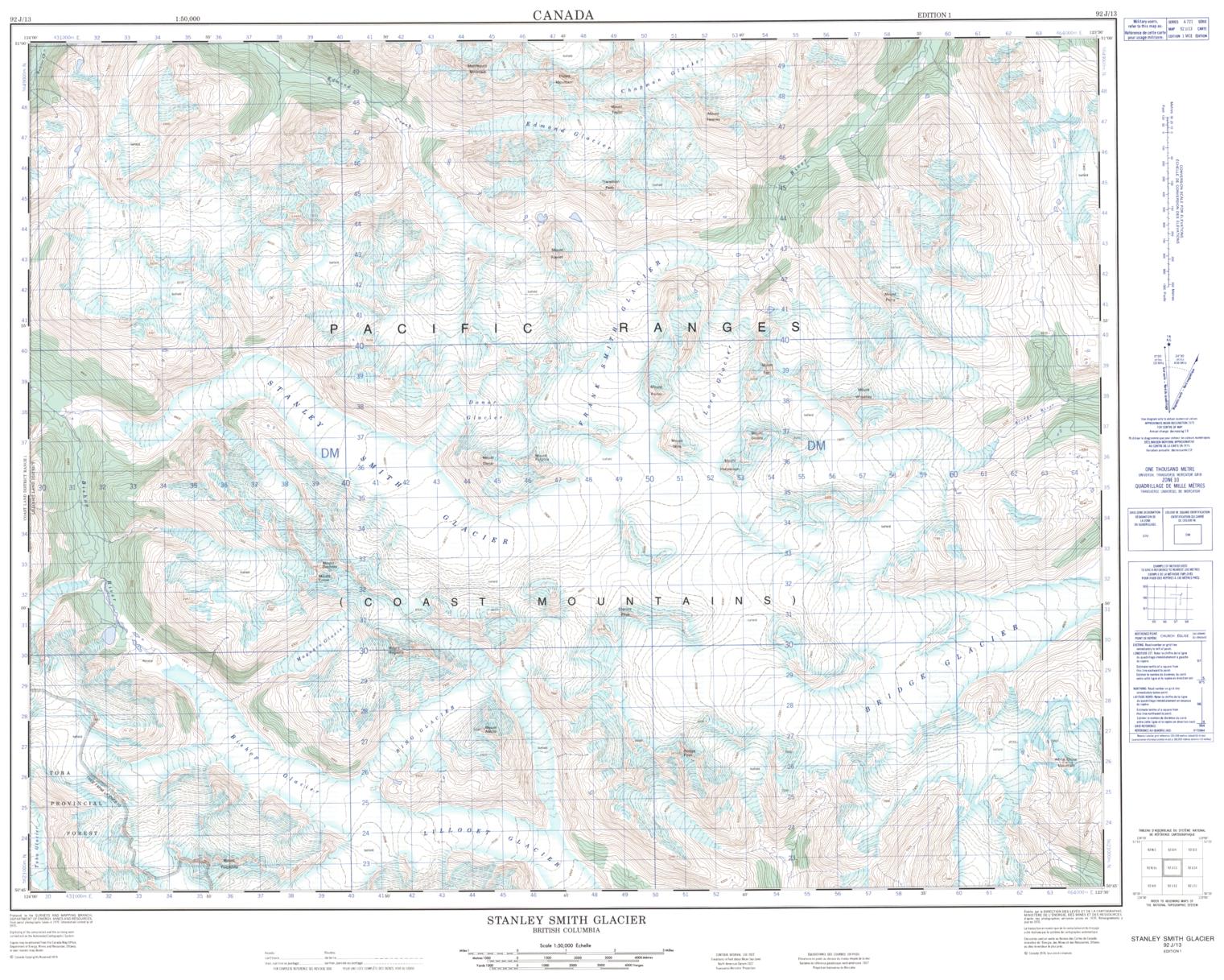 Canadian topographic map of Stanley Smith Glacier, British Columbia. NTS sheet 092J13 Edition 1.