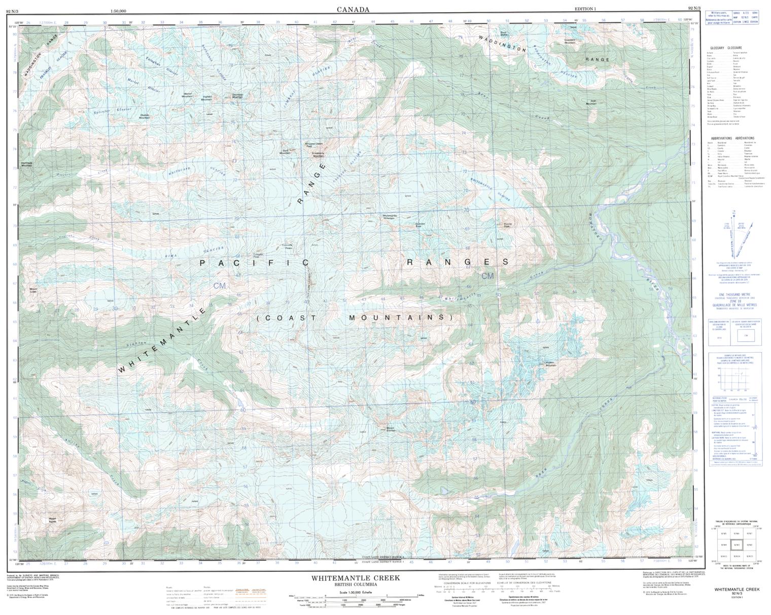 Canadian topographic map of Whitemantle Creek, British Columbia. NTS sheet 092N03 Edition 1.